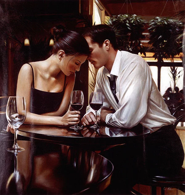 一对共进晚餐的情侣,这画面和画质你肯定不信这是手绘的吧,但是事实这就是手绘出来的。