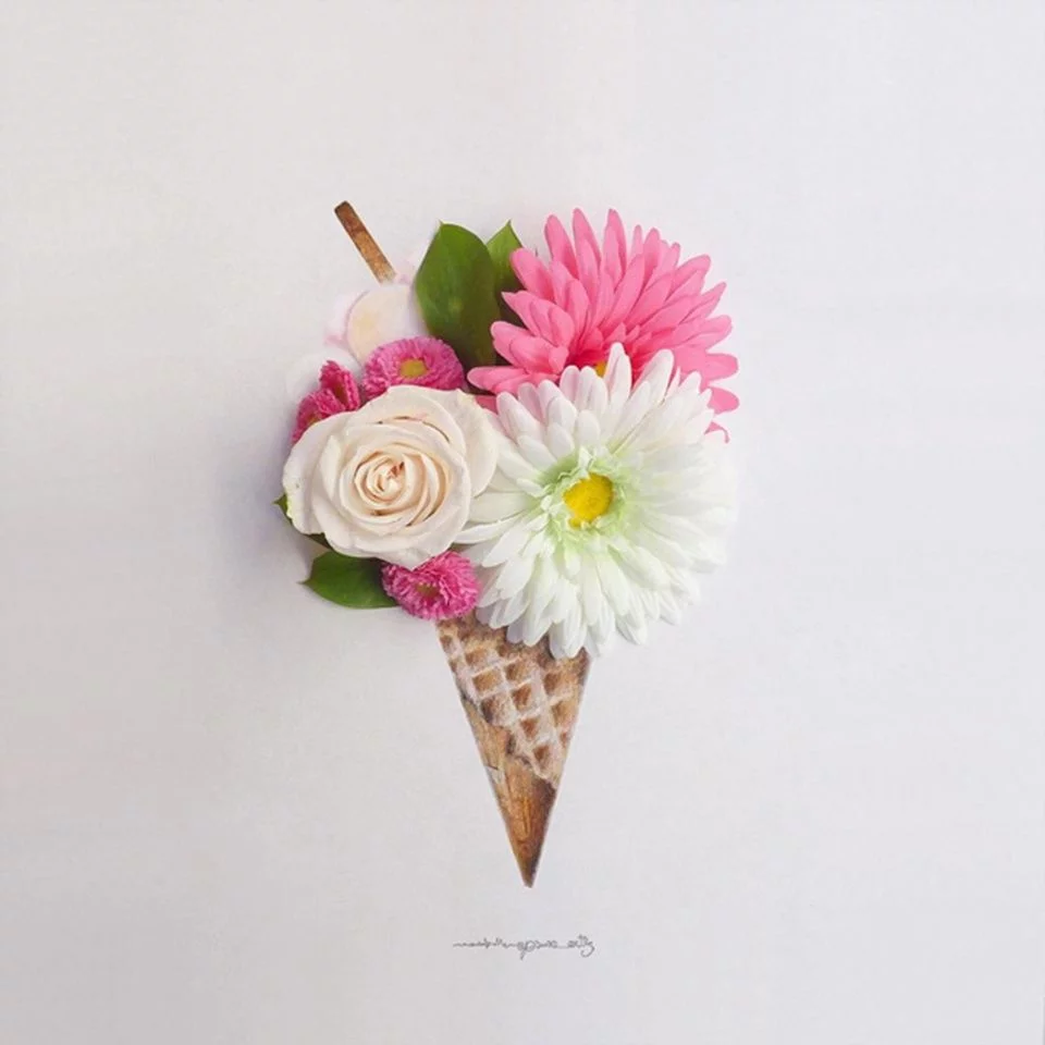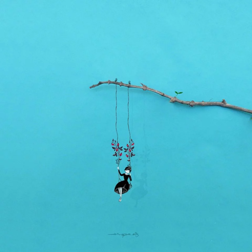 这组自作品是西班牙马拉加的摄影师Jesuso Ortiz利用各种植物和花朵来拍摄创意的摄影作品,在展现出浪漫童话氛围的同时,与漫画结合后,整个照片呈现出了一种3D的立体感,可以说又是一个将实物和漫画结合的天衣无缝的经典案例。