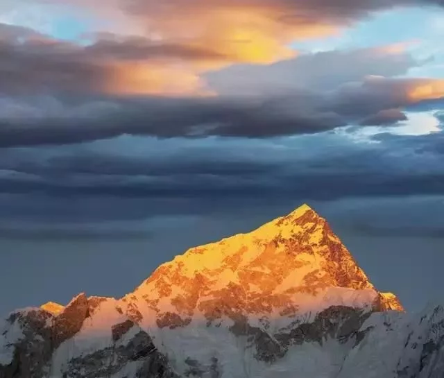 借助明暗对比的方法拍摄金顶雪山,照片中雪山金顶得到突出表现。