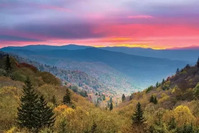 拍摄山景时,选择视野开阔的位置进行拍摄,可以将由近及远的景物层次丰富地展示出来。